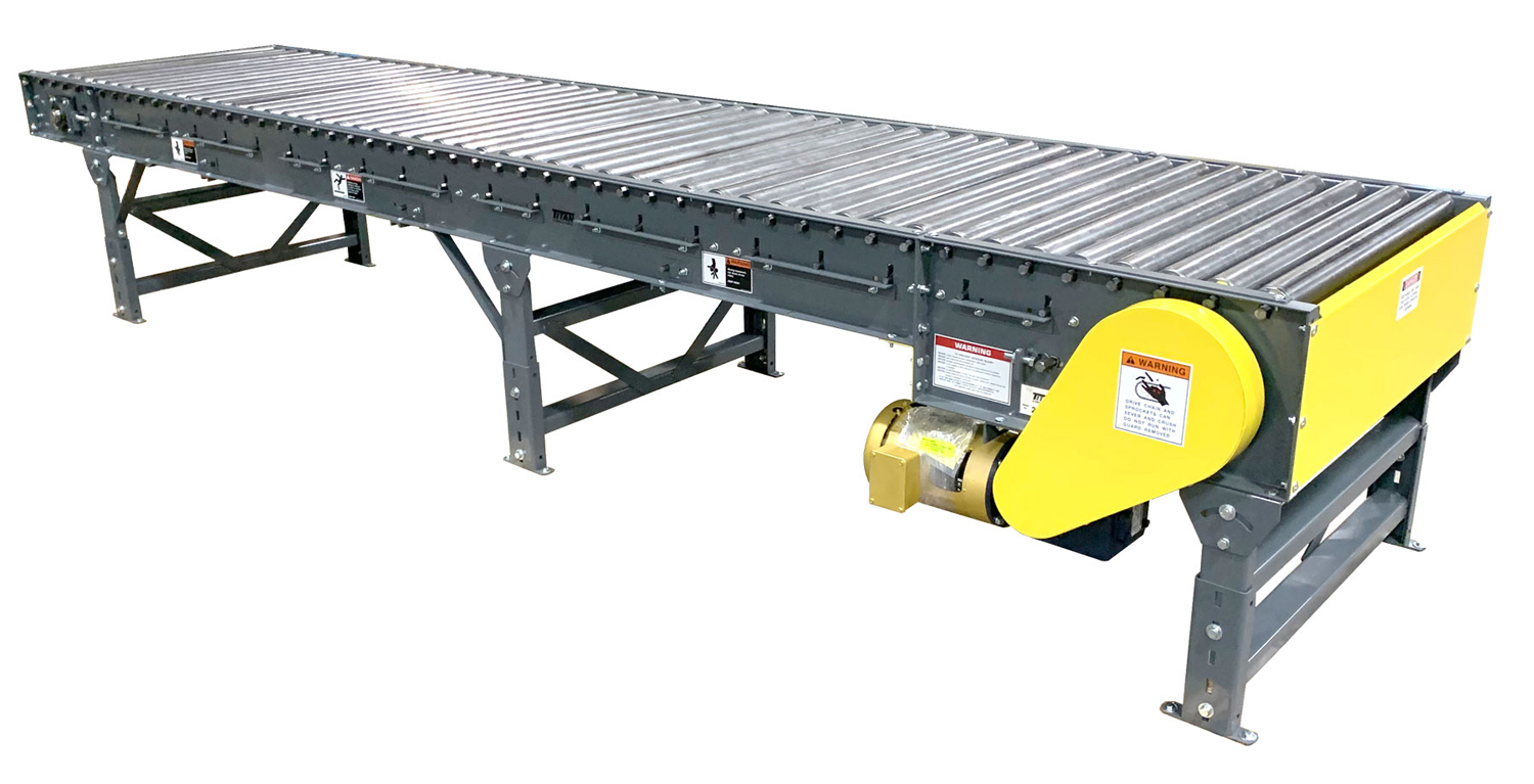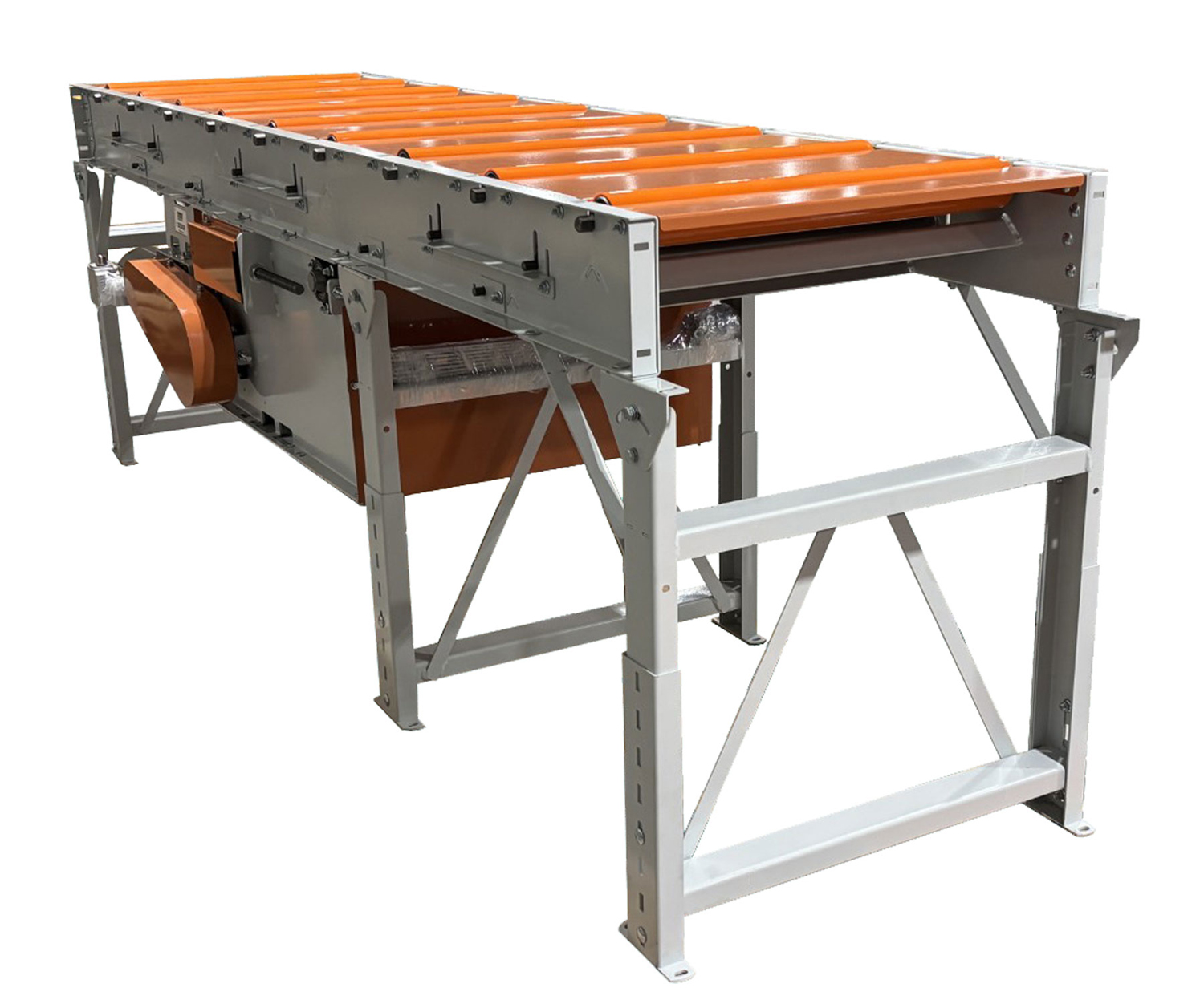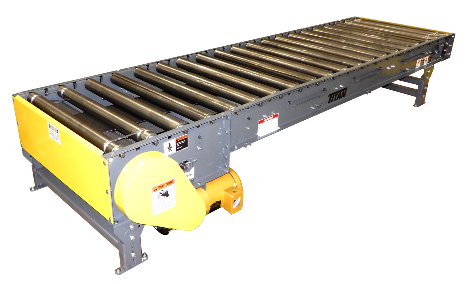 When your application requirements dictate a heavier capacity Belt Driven Live Roller Conveyor, the selection should be a TITAN Model 408. The 1.9″ diameter x 16 gauge rollers are mounted in a formed 12 gauge frame and have the “lift out” feature that meets most safety requirements. The Model 408 features a heavy duty 8″ diameter crown face rubber lagged (vulcanized) pulley with a 1-7/16″ diameter drive shaft. Compression rollers are mounted on 6″ centers. The compression roller brackets are supplied in 2″ increments and mounted externally for quick access. All components used in the Model 408 are designed to be compatible with other TITAN equipment for interface and systems integration.