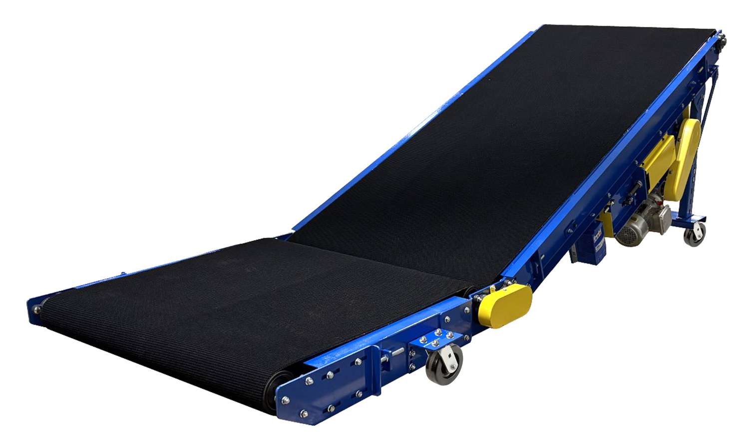 Titan’s Model 204 Floor to Floor Slider Bed adds flexibility to your manufacturing process by allowing you to utilize valuable floor space more effectively. The double nose over with bend rollers allows a smooth transition of the product from incline to horizontal thus protecting fragile products. The Model 204 uses a 4″ diameter crown faced rubber lagged drive pulley with a rugged 4″ deep formed 12 gauge box style frame. Adjustable “H” type supports or ceiling hanger brackets are furnished as standard equipment. A center drive and take-up can be added for reversing applications. The design of all Titan conveyors allows you to add components easily to achieve a completely integrated material handling system.
