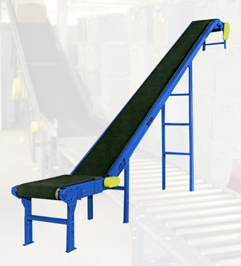 If a rugged, industrial material handling system is required, consider using the Titan Model 208 Floor to Floor Slider Bed conveyor in your system. The heavy-duty 8″ diameter rubber lagged (vulcanized) drive pulley gives that extra capacity for heavier loads and longer incline sections. The optional 3″ long power feeder adds flexibility for in-line flow of your product. The standard double nose over is adjustable up to a 30 degree incline. The Titan Model 208 has all of the rugged design features of our proven Model 108 Slider Bed and standard optional equipment is available but if your application requires a special modification, Titan Industries is willing and happy to accommodate your requirements.