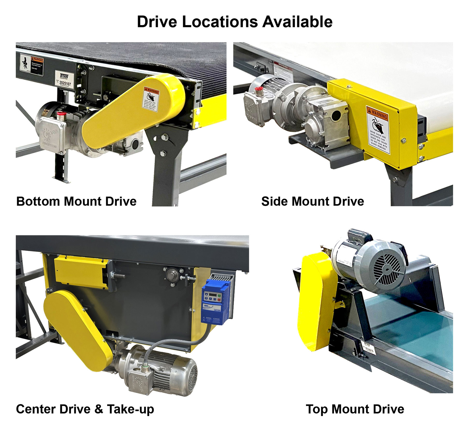 If your requirements call for a rugged, industrial designed unit, then the Model 108 Slider Bed belt conveyor from Titan Conveyors is the unit you should choose. Typical applications include heavy loads, 24/7 operation, and lengths over 10 feet. The Model 108 has a rugged 8″ diameter rubber lagged drive pulley. With the modular design of the Model 108 you will be able to add additional length at a later date if the need arises. Even though the Titan Model 108 is a heavy-duty unit, it is economical to own and operate. Titan specializes in hard to find special wide versions of the Model 108. Call Titan for special widths beyond 72″.